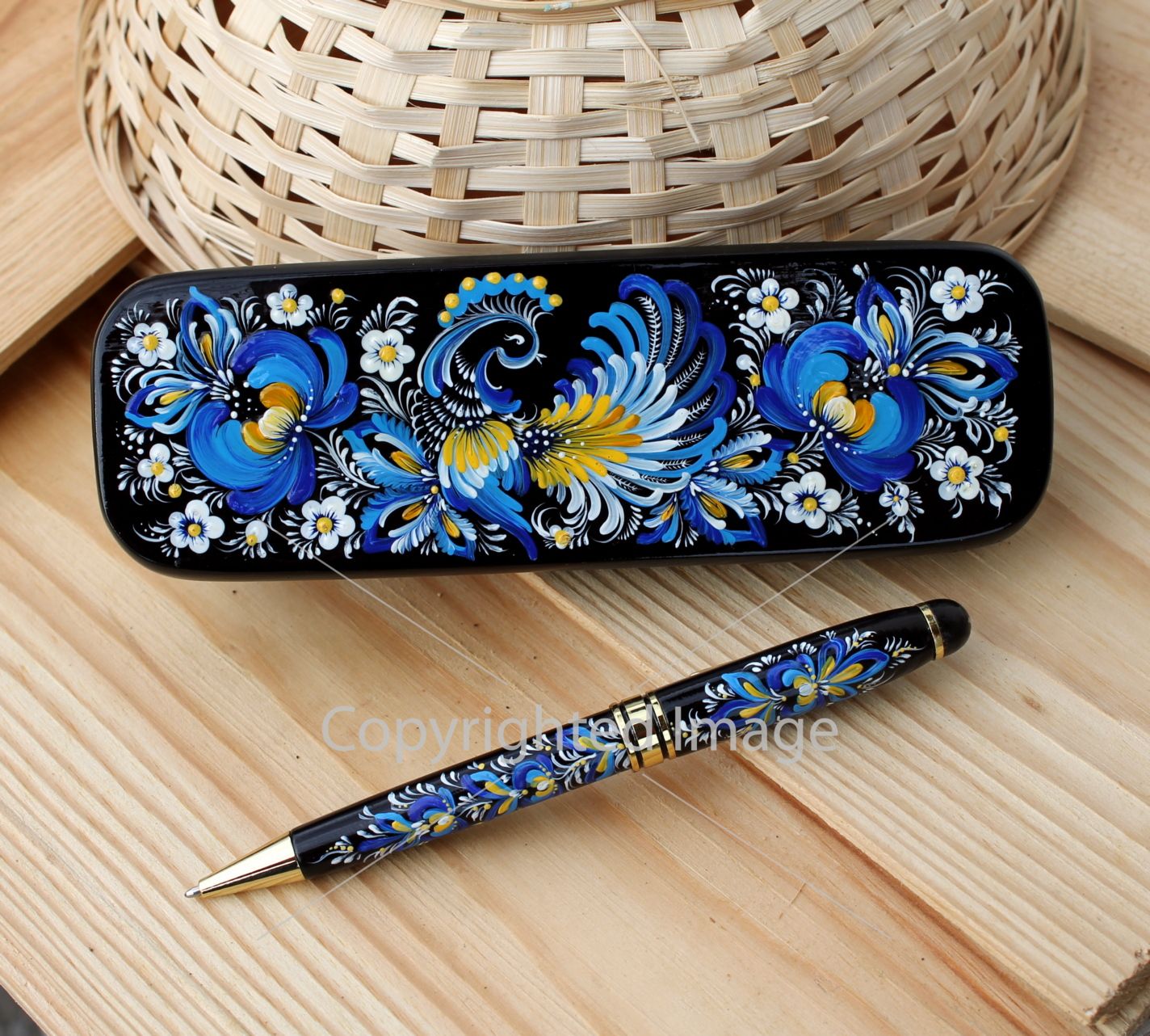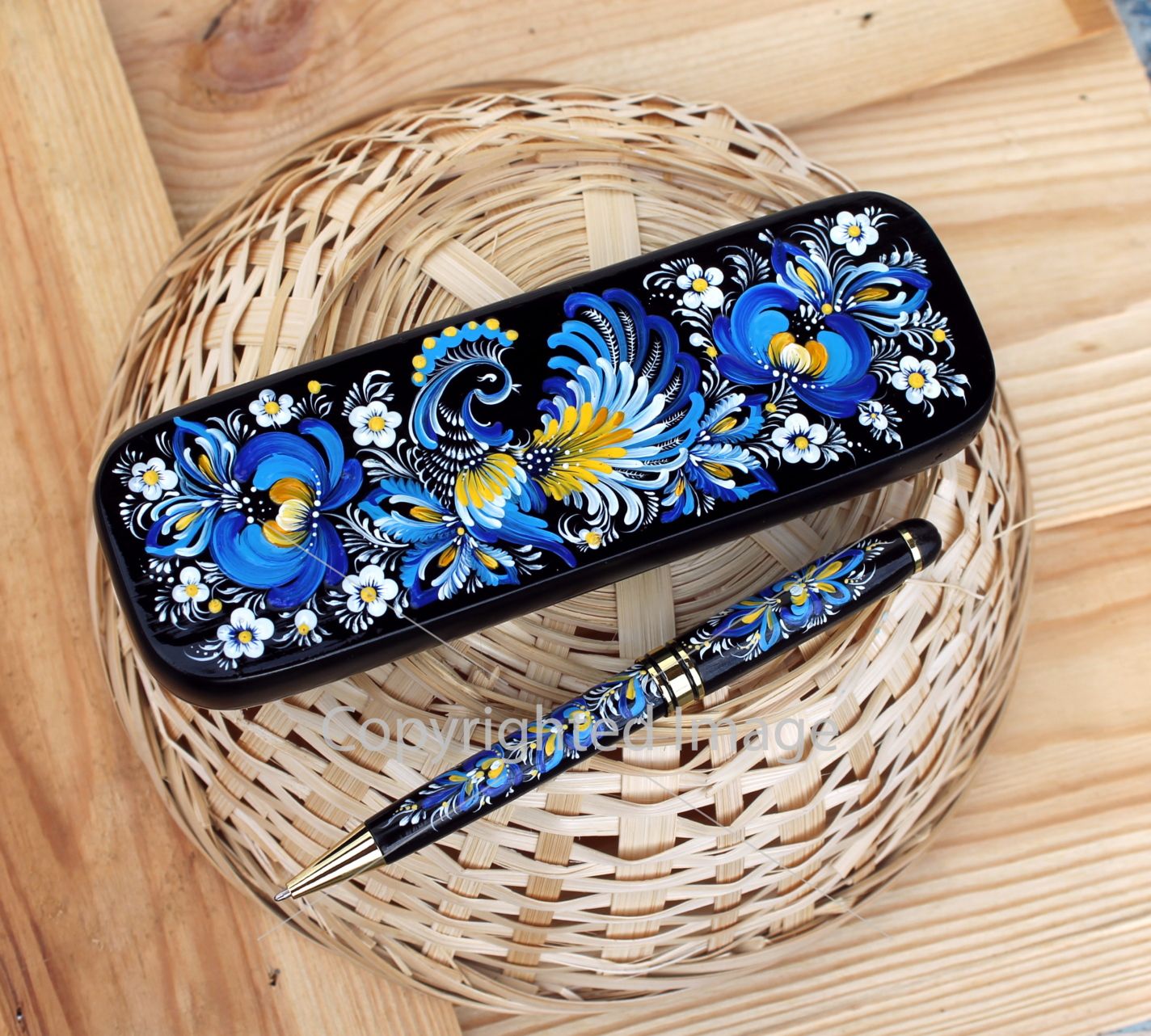 Красивый и статусный подарок. Ручка и пенал расписаны вручную знаменитыми мастерами Петриковской росписи. Каждое изделие уникально и не имеет повторений. Утонченная роспись на ручке достойна уровня всевозможных выставок и олицетворяет наш красивый, яркий национальный Украинский стиль.