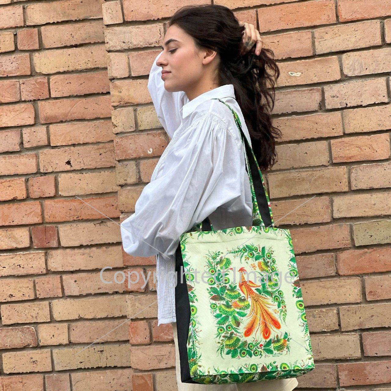 Плотная шоппер - сумка с Петриковской росписью "Птахи", автор Пикуш Н.А.