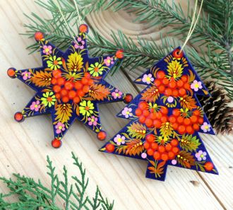 Деревянные елочные украшения с необычными узорами украсят вашу ёлочку, привнеся в ее праздничный образ украинский колорит и этнические мотивы.