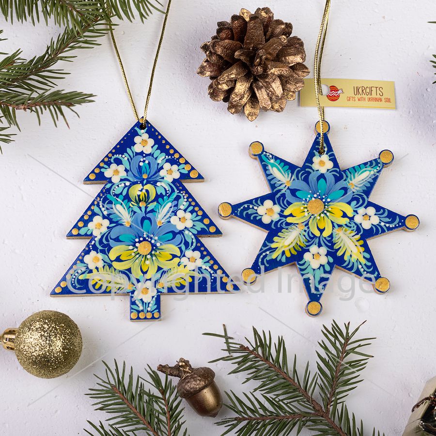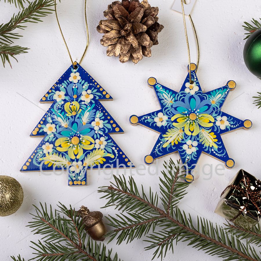 Деревянные елочные украшения с необычными узорами украсят вашу ёлочку, привнеся в ее праздничный образ украинский колорит и этнические мотивы.