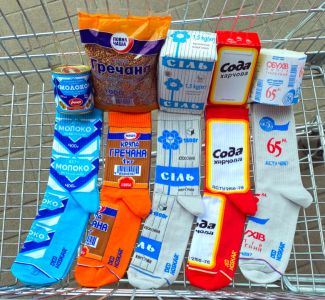 В наборе 5 пар крутейших носков с изображением товаров первой необходимости: соль, гречка, сгущенное молоко, туалетная бумага, сода