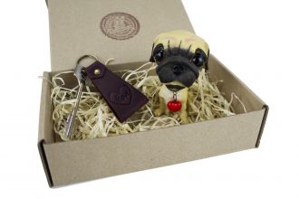 Набор "Щенок Мопс + Love" - это приятный щенок качающий головой с кулоном в виде сердечка и красивый брелок с надписью "Love" из натуральной кожи.