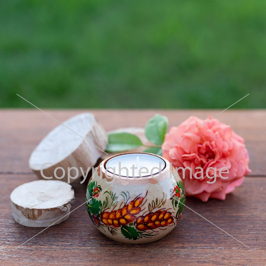 - Мастер расписывает подсвечник натуральными гуашевыми красками на основе меда, поэтому он получается экологически чистым и безопасным.
