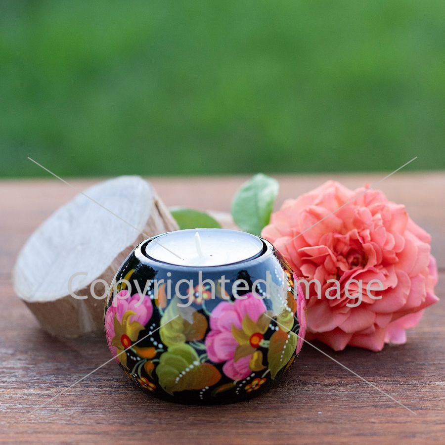 - Каждый подсвечник с Петриковской росписью, который вы можете купить у нас, обязательно покрыт матовым или глянцевым лаком, придающим приятный блеск.