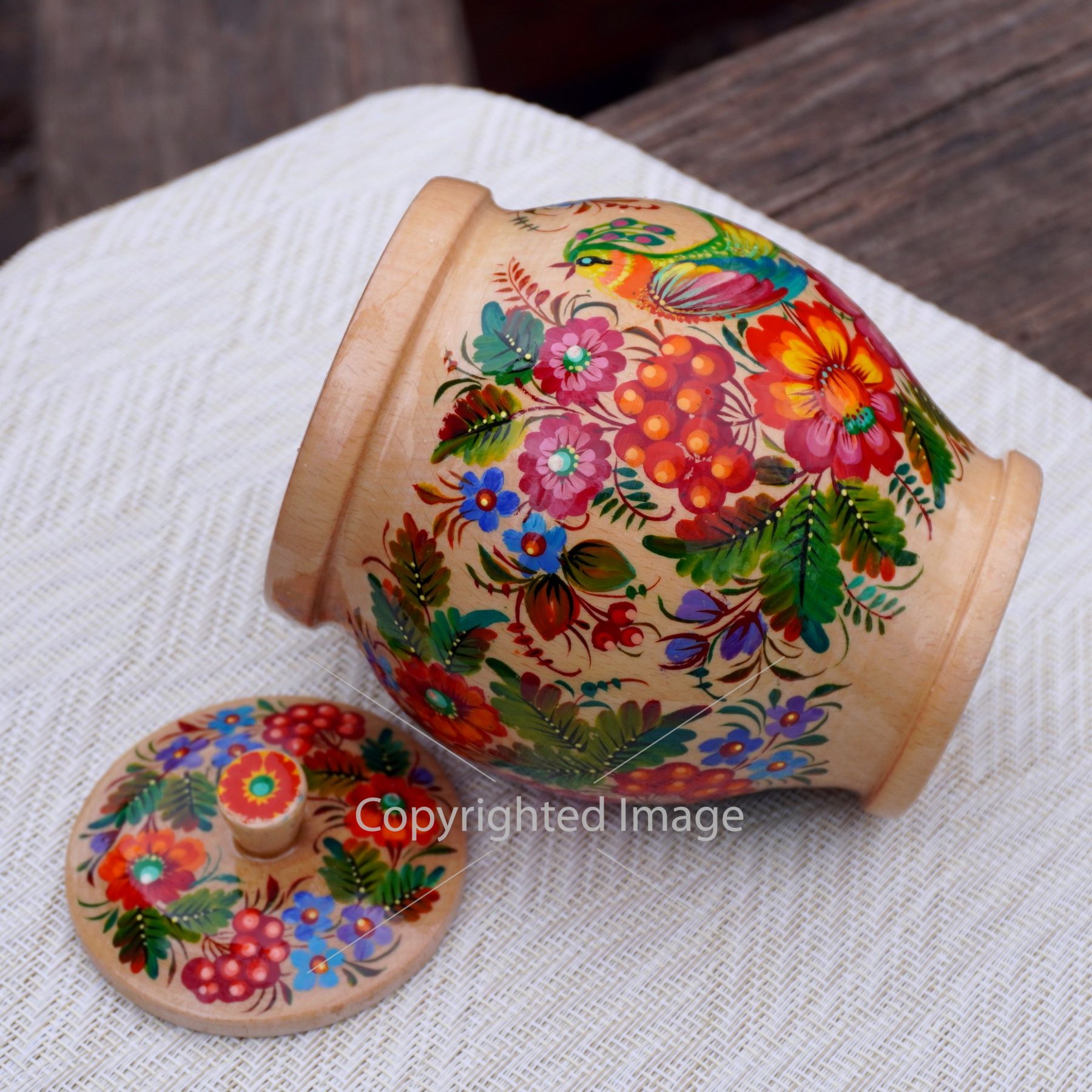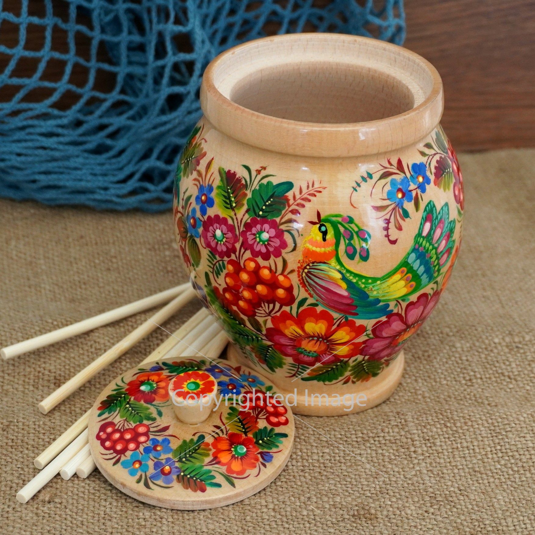 Расписная деревянная емкость для сыпучих – это
