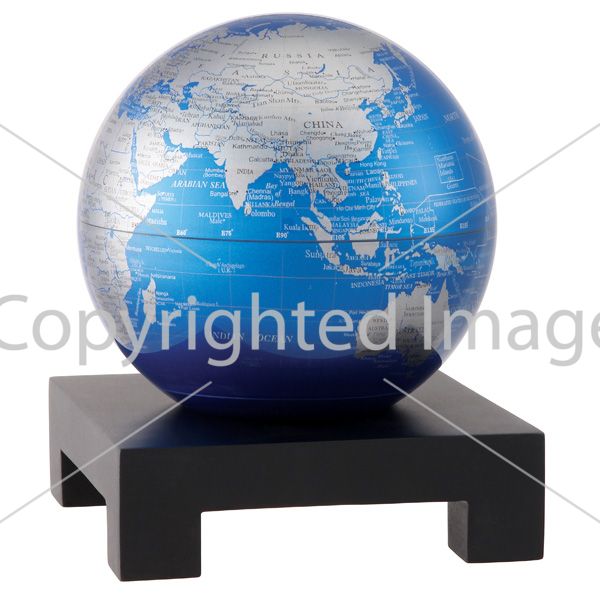 Самовращающийся глобус MOVA GLOBE Cobalt Blue and Silver (серебристый с политической картой мира) 12 см