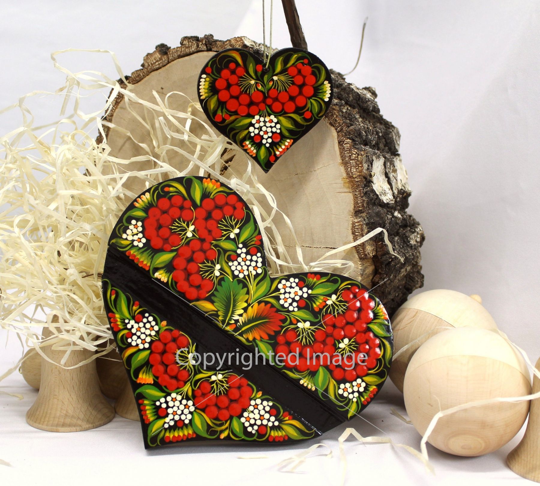 Пара сердец для любимой женщины. Большое седце - подставка для смартфона, айфона. Малое сердечко - милая подвеска в автомобиль, на кухню или в домашний интерьер. Оба изделия - символы, которые изготовлены вручную и расписаны известным мастером Петриковской росписи. В каждом сердце - особо ценная магия любви.