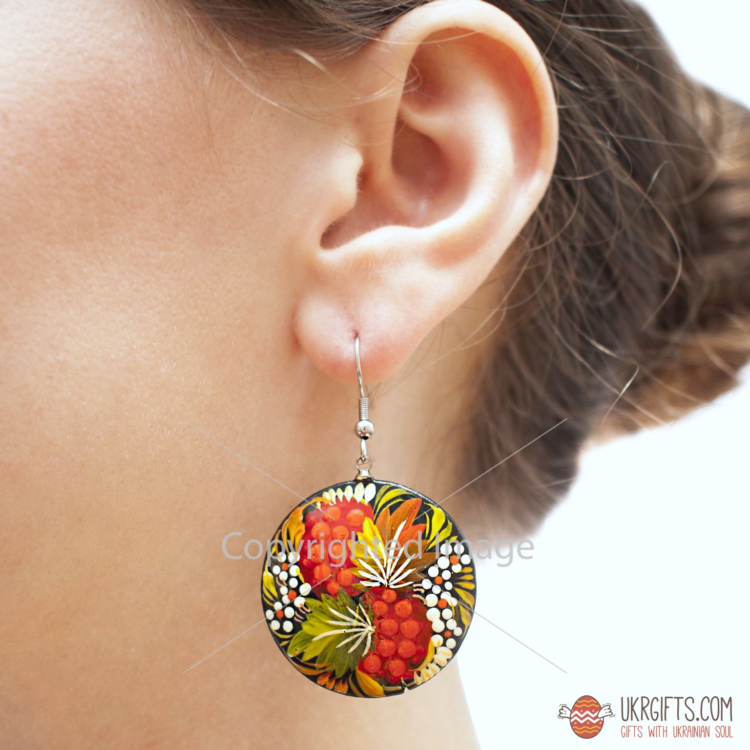 Деревянные серьги с Петриковской росписью дополнят любой наряд