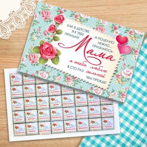Шоколадный набор — это очень вкусная вещь! Оригинальность такого великолепного подарка заключается в том, что каждый кусочек в этом наборе завернут в отдельную обертку со своим уникальным и совершенно замечательным посланием. Каждый раз, балуя себя вкусненьким, ваша мамочка будет с радостью вспоминать о Вас! Дарите веселые, креативные подарки и ваши близкие поймут, что они сделаны от всего сердца!