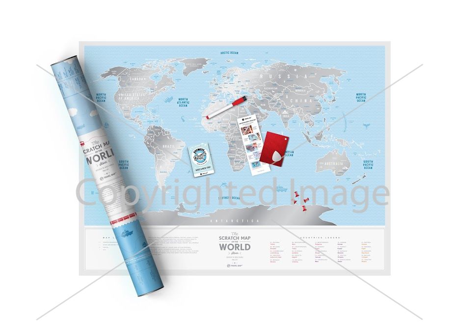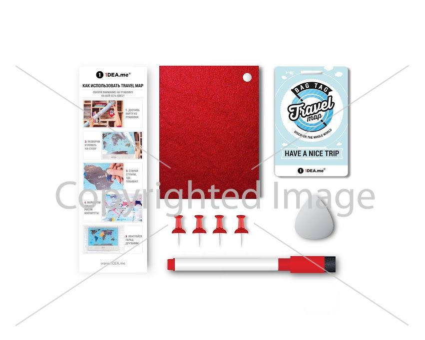 пластика с зеркальным покрытием. На карте можно рисовать маршруты и писать заметки маркером, который идет в комплекте. К карте прилагается бирка на чемодан, чтобы никогда не терять свой багаж.