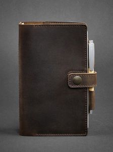 Стиль, статус, классика дизайна и оригинальность наполнения. Так можно охарактеризовать эту серию софт-буков. Строгость стиля и классика исполнения выражена в обрамлении из качественной кожи. Статус чувствуется сразу, когда софт-бук ложится в руку. Оригинальность наполнения заключается в том, что бук выполнен из трех сьемных тетрадей, прикрепленных к цельному куску кожи. Каждая тетрадь содержит 40 листов, и под заказ Вы можете выбрать цвет бумаги и тетрадей. Высококачественная бумага может быть молочного оттенка, белая разлинованная, крафтбумага или бумага черного цвета для записей белыми чернилами. Размер каждой тетради 12х20см, а близ кожанного хлястика располагается держатель для ручки/карандаша. Софт-бук выполнен полностью вручную.