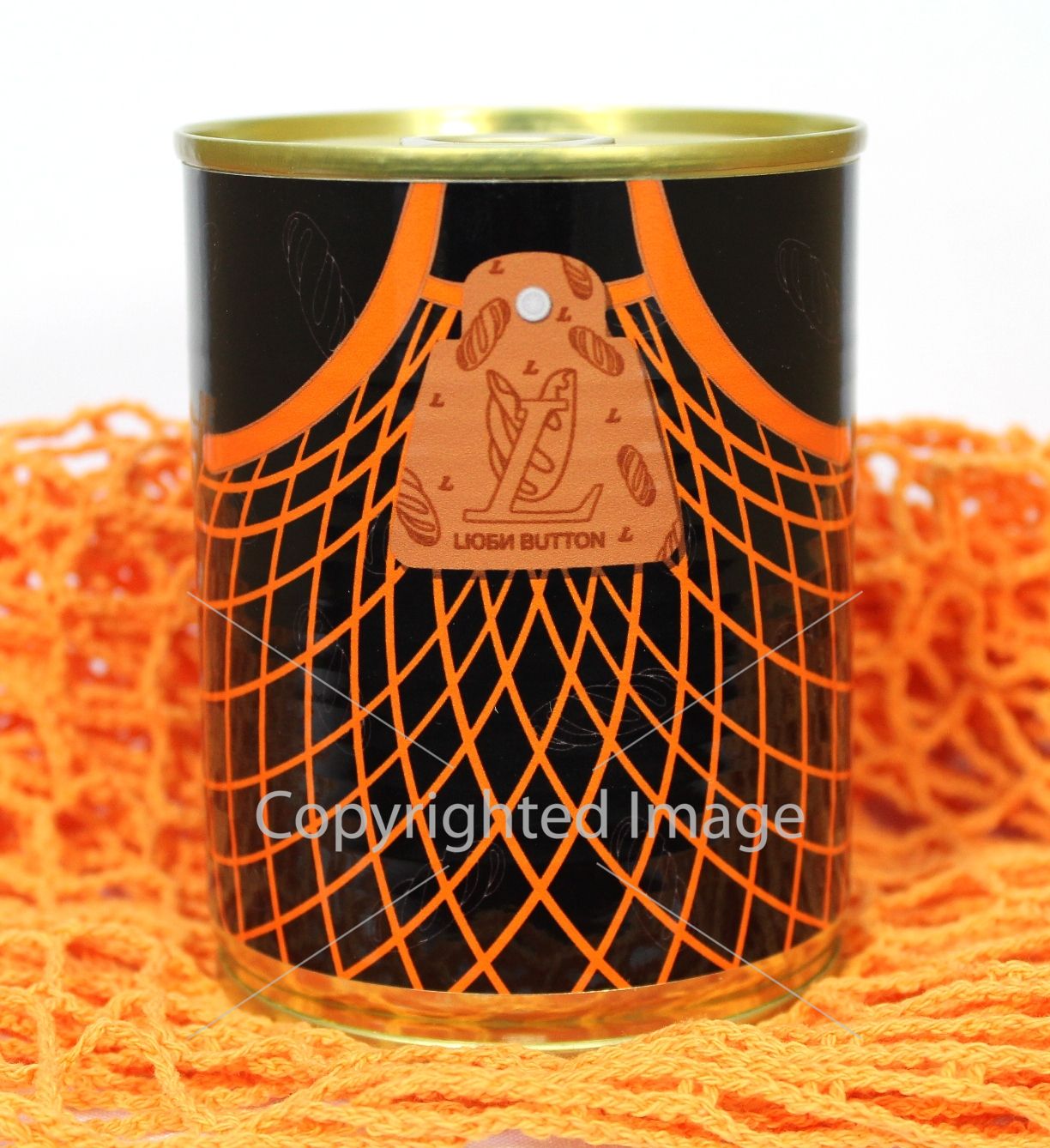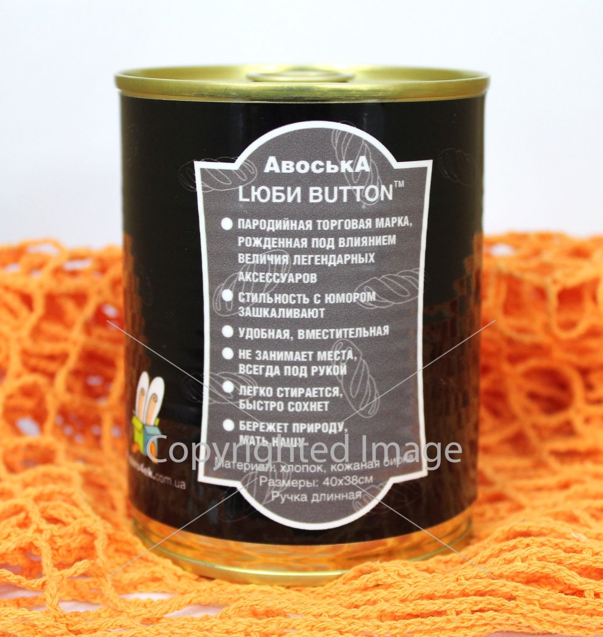 - Эко-сумку или авоську LЮБИ BUTTON мы запаковали, точнее закатали в консервную банку.