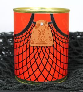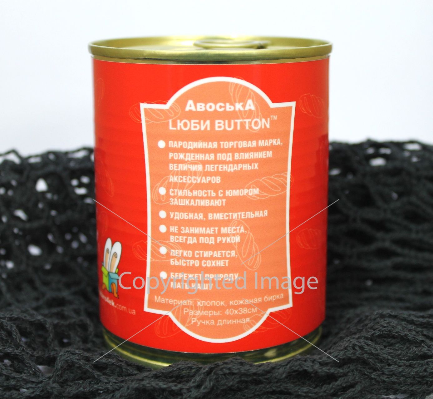 - Эко-сумку или авоську LЮБИ BUTTON мы запаковали, точнее закатали в консервную банку.
