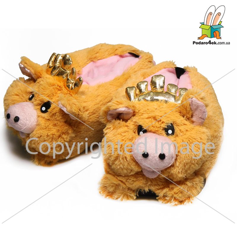Приятный подарок в канун новогодних праздников. Свинка является символом 2019 года и несомненно, мягкие плюшевые тапочки свинки будут желанным подарком под Вашей новогодней елкой. В отличие от большинства тапочек, предлагаемых в канун праздников, наши тапки совершенно уникальны. Взгляните на их личико – это не милые и ласковые хрюшки, а серьезные и строгие свинки. Статус этих созданий подтвержден наличием золотой короны, ведь это царь-свинки. Но как только ножки погрузятся в мягкие тапочки, Вы почувствуете комфорт, и приятные улыбки Ваших гостей.