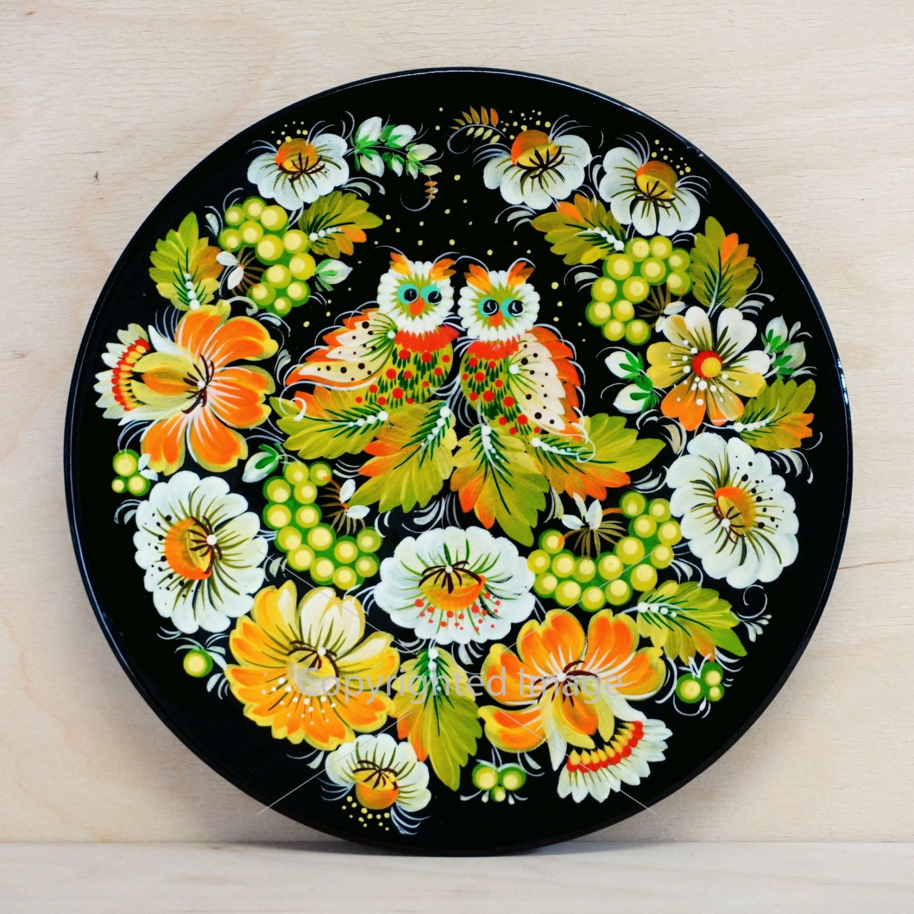 Тарелка с Петриковсксой росписью "Совушки" диаметр 25 см