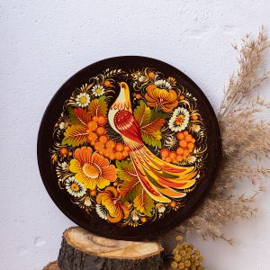 Тарелка с Петриковской росписью – это также оригинальный корпоративный сувенир, эксклюзивный подарок руководителю с национальными нотками. Мы можем сделать тарелку любого размера и расписать ее с учетом пожеланий заказчика.