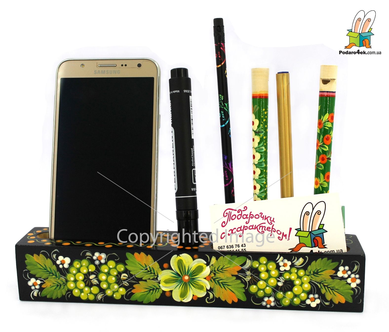 Дерев'яний настільний органайзер з Петриківським розписом (06)