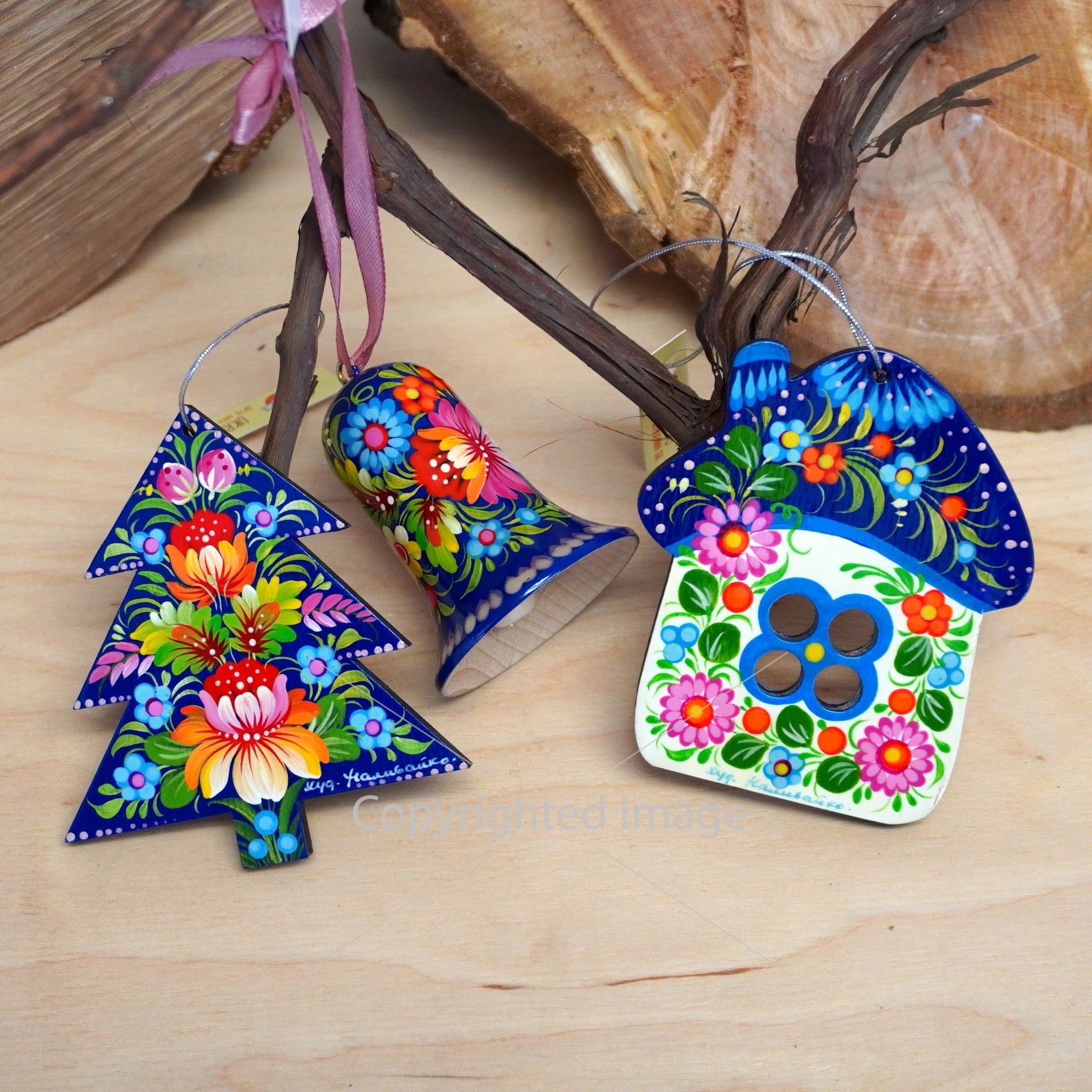 Виготовляються такі сувеніри з липи або клена руками досвідченого столяра, а потім майстри Петриківського розпису наносять на них яскраві візерунки, використовуючи гуашеві фарби на основі меду. Поверх готовий малюнок покривається глянсовим або матовим лаком. Кожна прикраса, незважаючи на загальну схему, унікальна, тому ви не зустрінете двох однакових виробів. У кожний - автор вкладає частинку своєї душі.