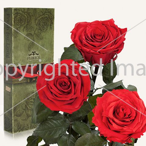Вечные розы "Красный рубин", 3 розы" ( 5 карат, 25-37 см стебель)