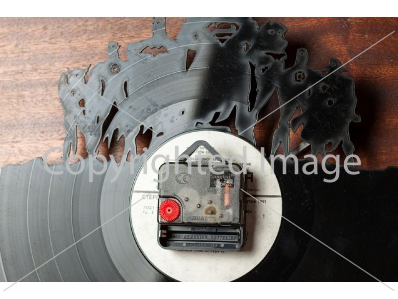Все супергерои - на одних часах из виниловой пластинки.