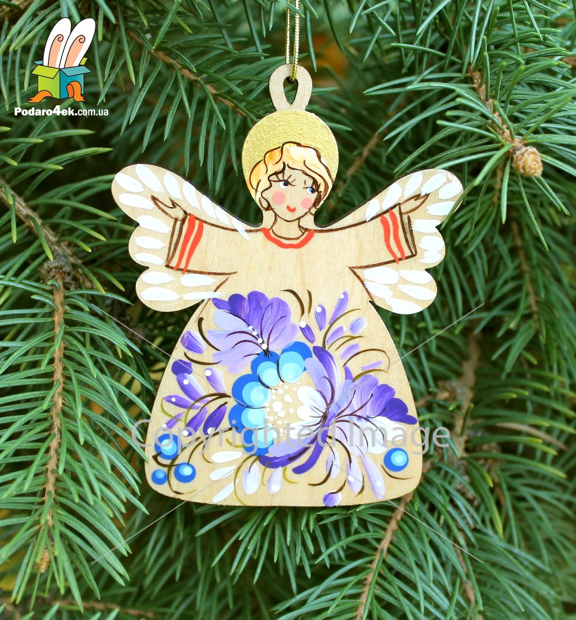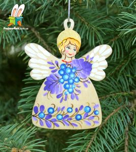 Елочная игрушка с Петриковской росписью "Ангел Рождественский" (03)