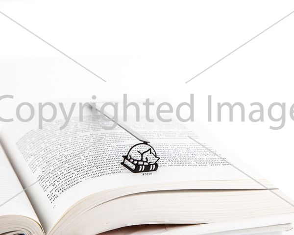 Крайне необходимая штука для книг и приятный подарок для любителей чтения. Прощайте заломанные странички, обрывки бумажек, карандаши и развернутые книги, лежащие брюхом на том месте, где вы остановились. Используйте чёрную изящную металлическую закладку Кошка и книги.