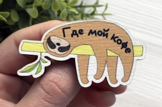 Значок из дерева "Ленивец - Я лень"